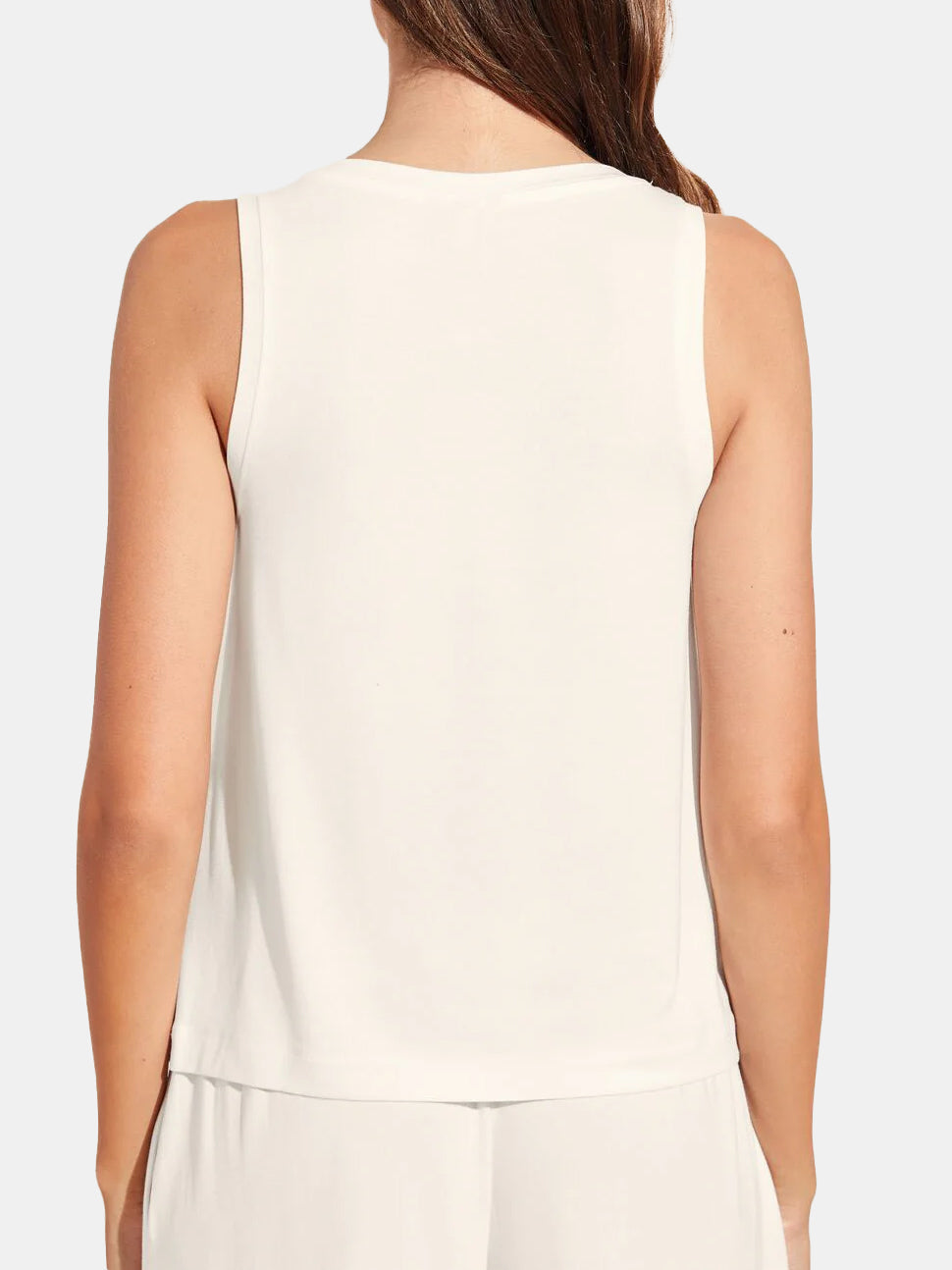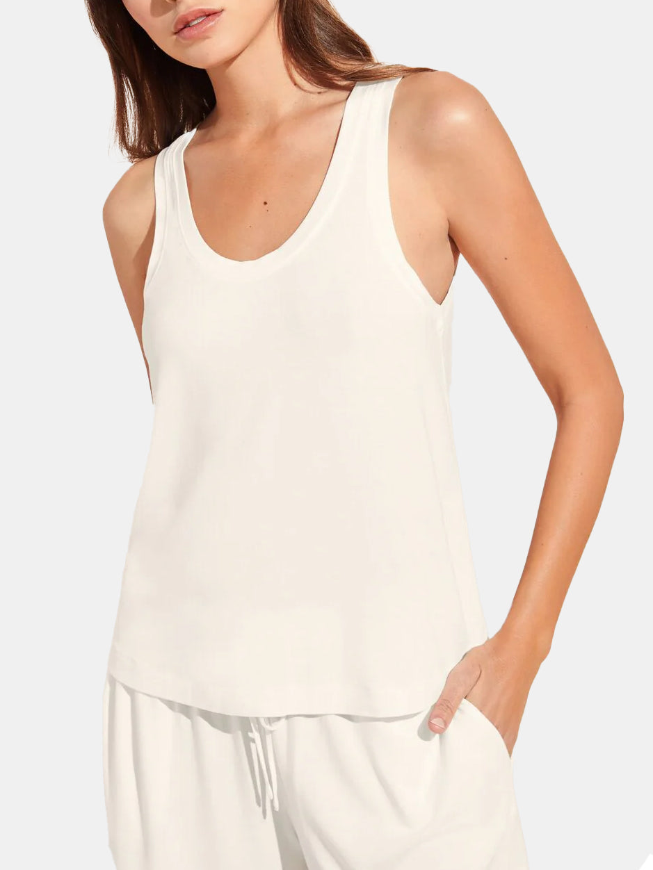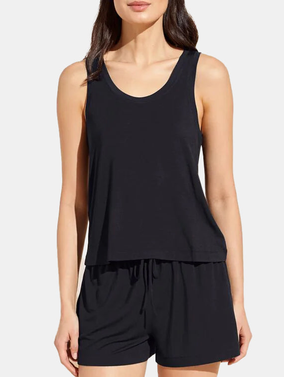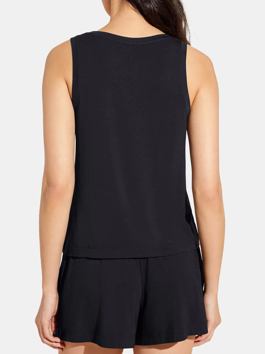 The Gisele Everyday Tank by Eberjey features a relaxed fit, scoop neck, and bra friendly straps. Pairs perfectly with the Gisele Everyday Relaxed Short and Gisele Everyday Relaxed Straight Leg Pant. Shown in Black and Ivory.