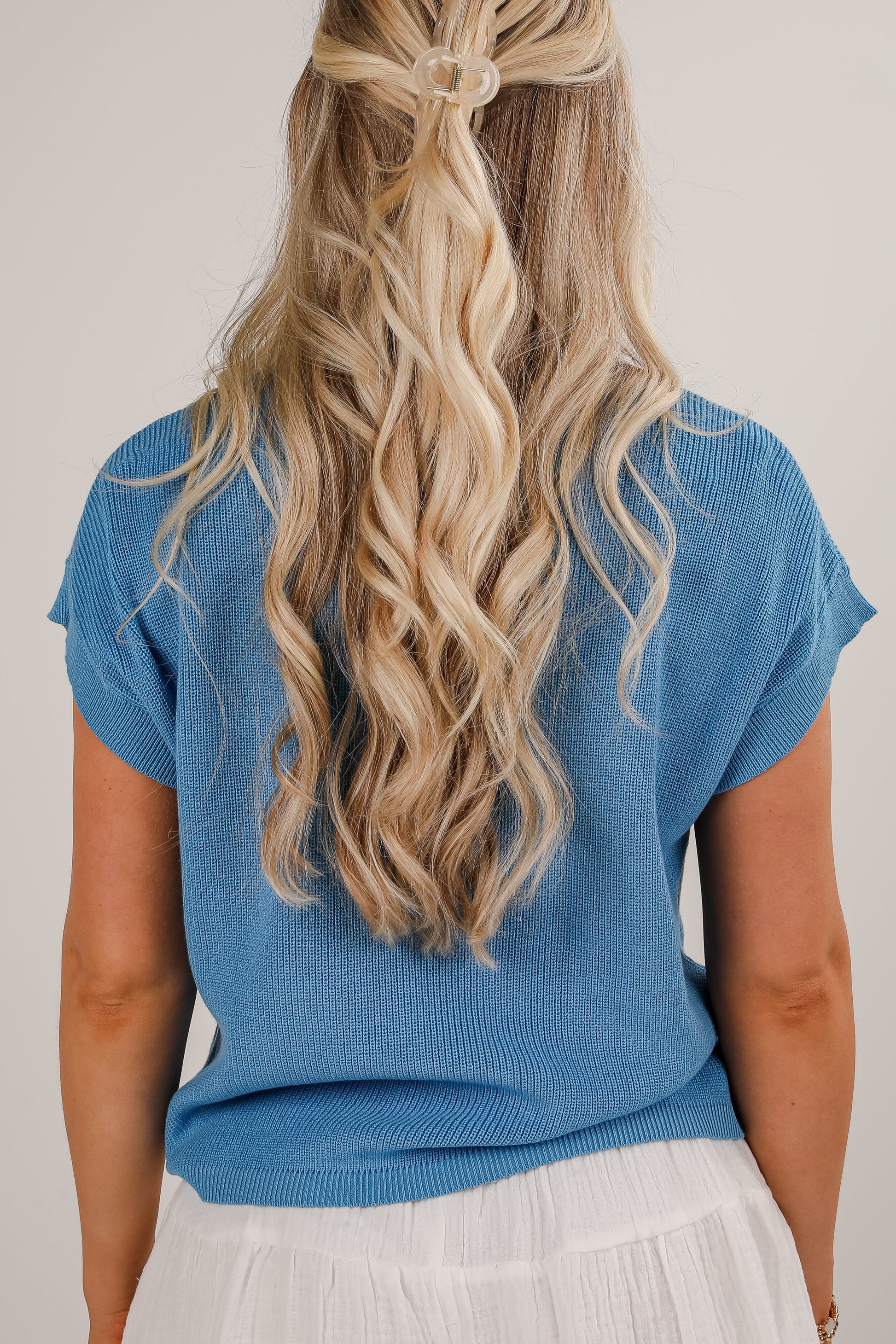 The Just Imagine It Blue Knit Top is both breezy and summery! Crafted from soft, breathable knit fabric, this top features relaxed cap sleeves and a handy front pocket for subtle style and function. The vibrant blue shade adds a cheerful pop, making it perfect for pairing with jeans, shorts, or your favorite casual bottoms. Whether you’re out and about or just kicking back, this top keeps you looking cool and feeling cozy all day long!