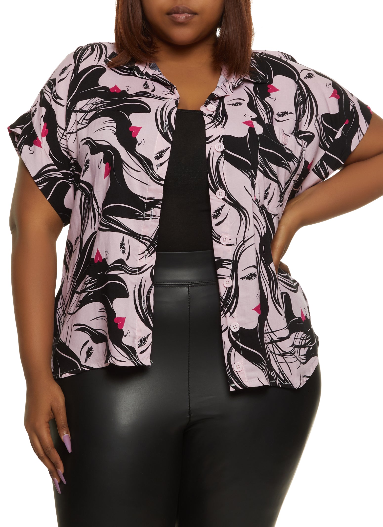 Plus Size Face Print Short Sleeve Shirt