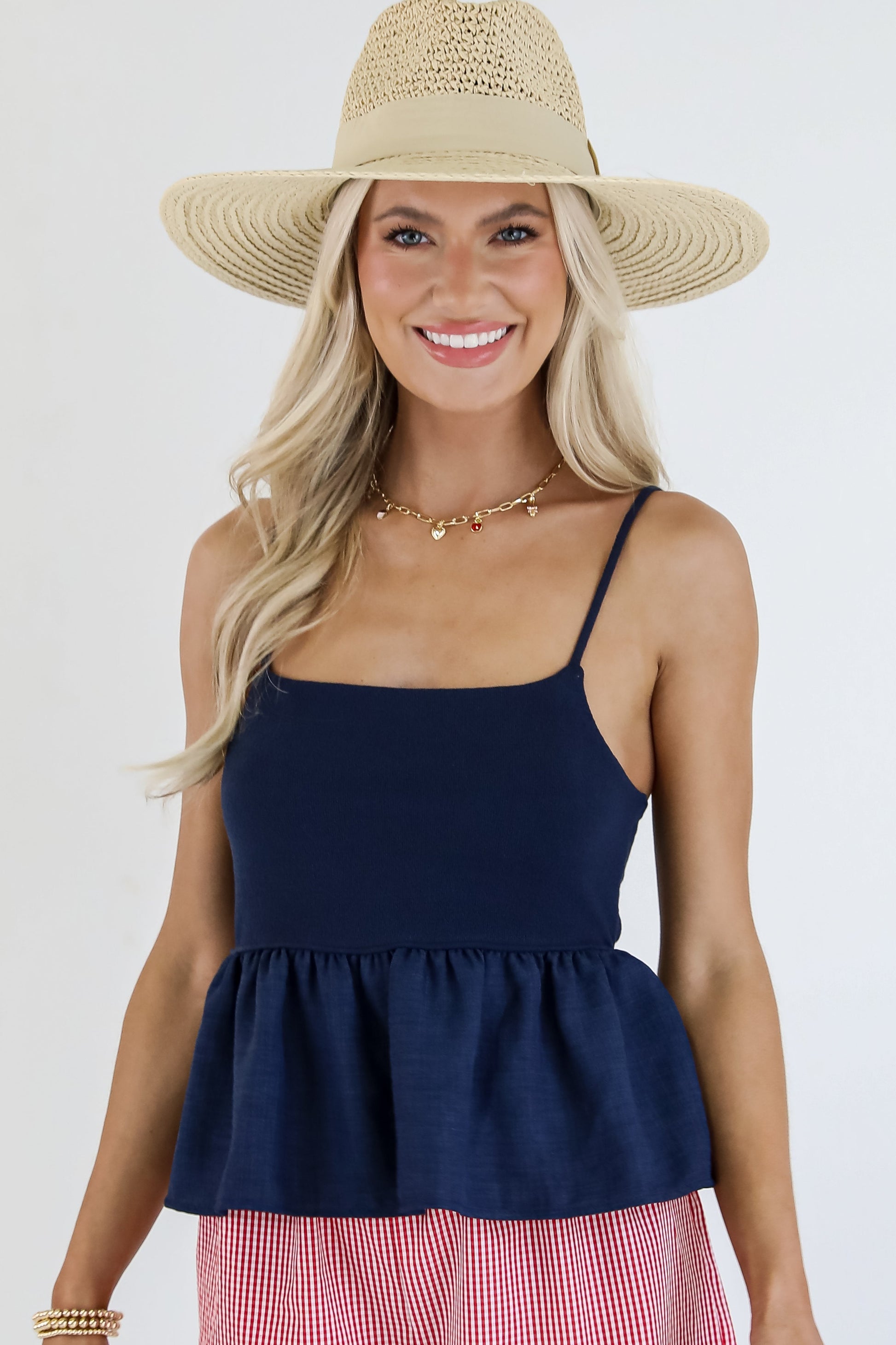 Get ready to have everyone's attention on you in the We The People Peplum Tank! Featuring a fitted bodice that flares into a flowy peplum hem, this tank creates a flattering silhouette that highlights your waist while keeping things light and breezy. The sleeveless design and soft, breathable fabric make it perfect for sunny days, while the classic cut makes it easy to dress up or down. Pair it with jeans, skirts, or shorts for an instantly put-together look! Available in 2 colors.