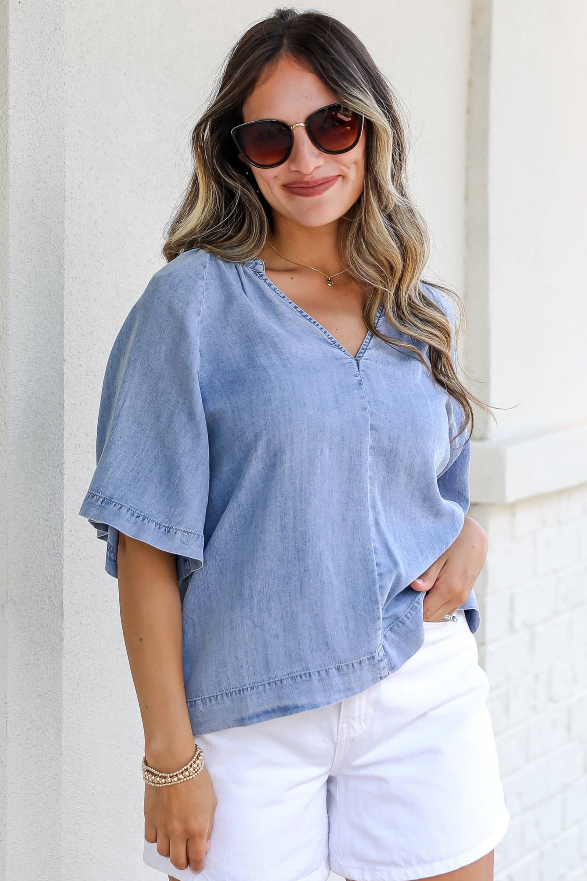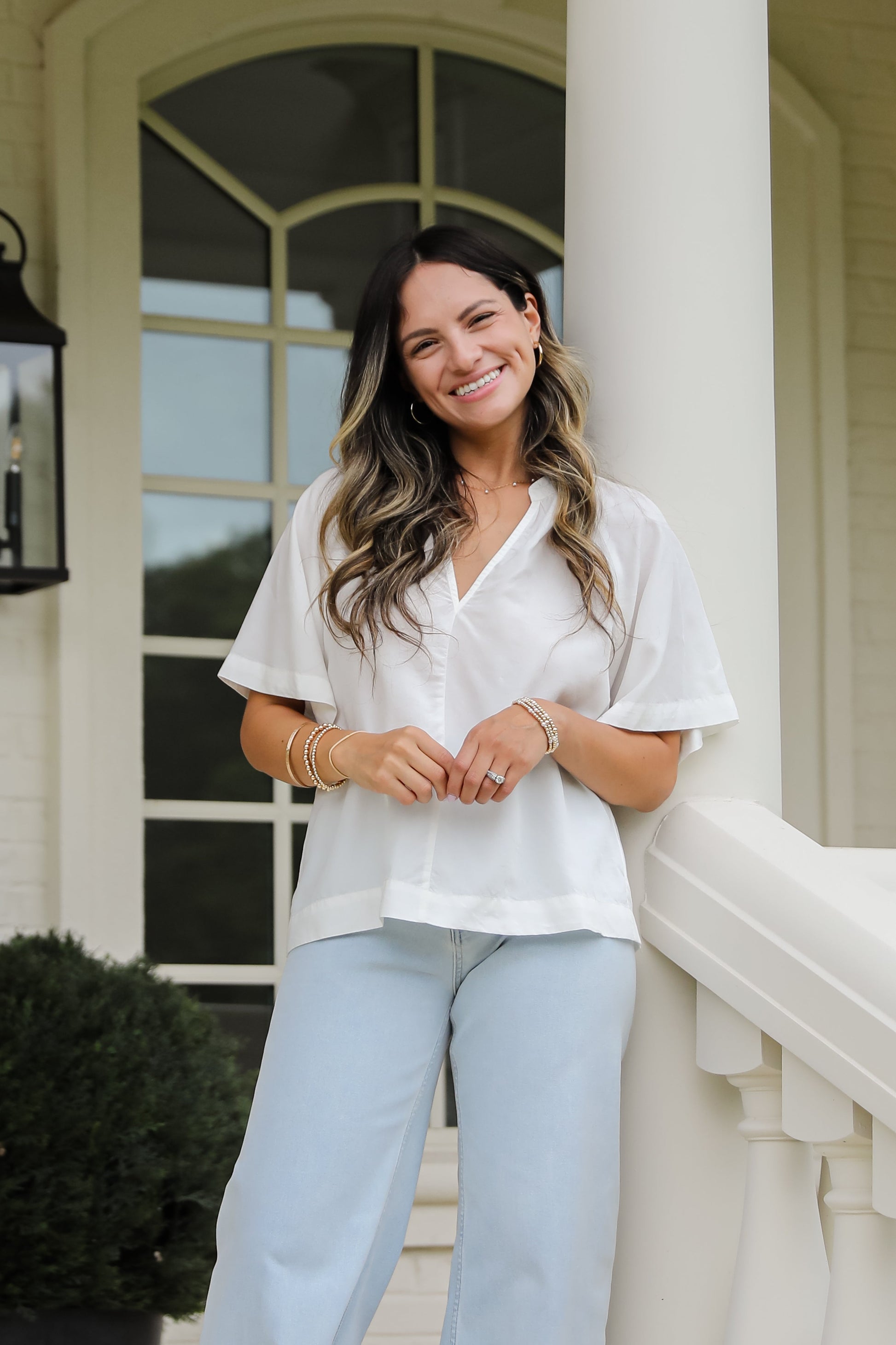 There's no easier way to have everyone admire your stylish demeanor than with the You Have My Attention Blouse! Designed with a soft, lightweight fabric, this top features a flattering V-neckline and relaxed silhouette that blends comfort with effortless style. Perfect for pairing with jeans, shorts, or a flowy skirt, it’s a go-to piece for casual days when you still want to feel put-together. Whether you're running errands or heading to brunch, this blouse brings timeless charm with a modern twist! Available in 2 colors.